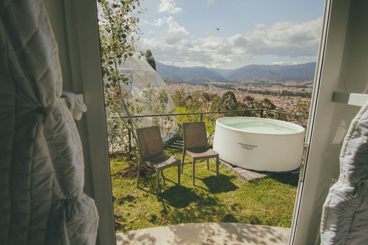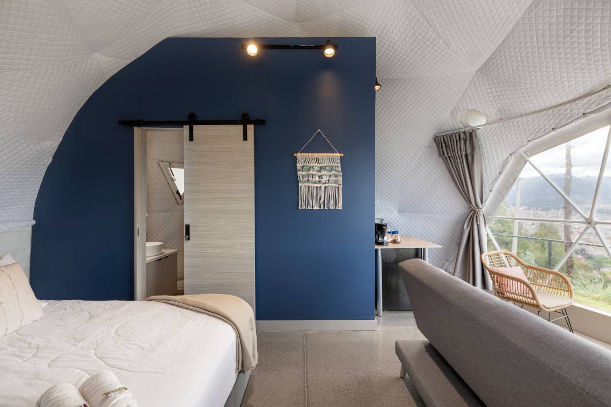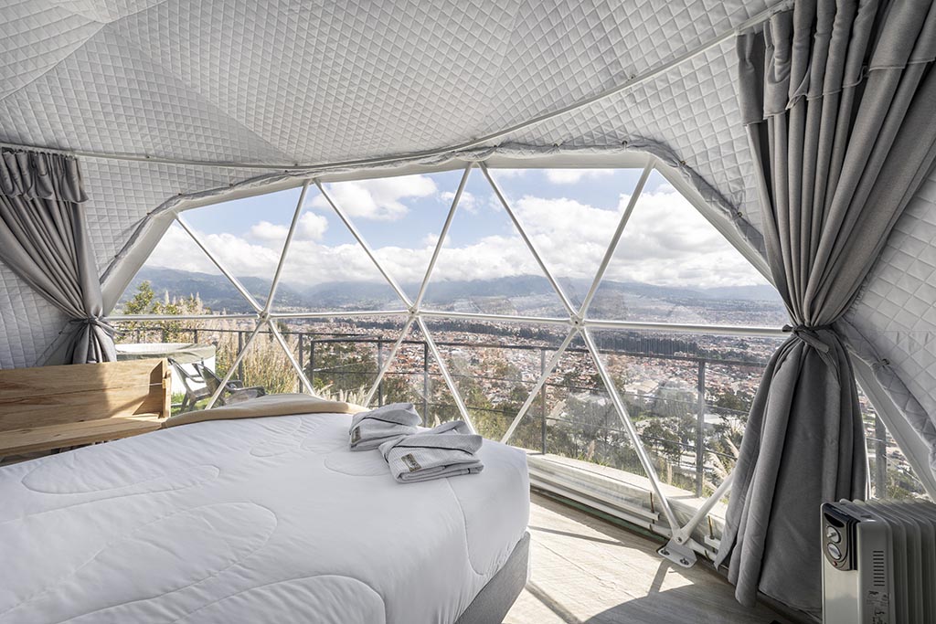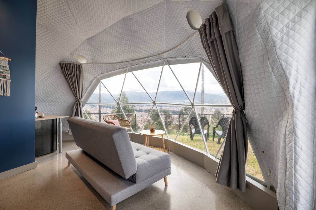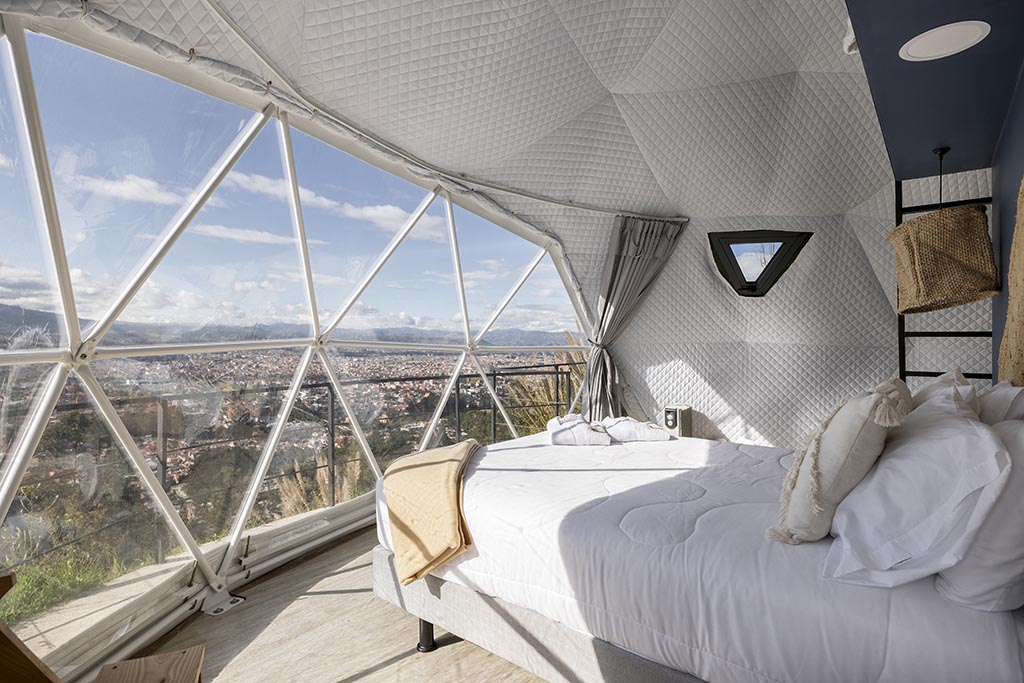 Las habitaciones vienen con una apertura transparente estilo "ventana" que ofrece una vista incomparable de Cuenca. Con dos amplias camas, puede alojar hasta 5 personas en un solo lugar. Acabados y detalles de lujo con sensación artesanal y natural que te harán no desear despegarte del domo. Un baño completo y con acabados de lujo para mayor comfort.
