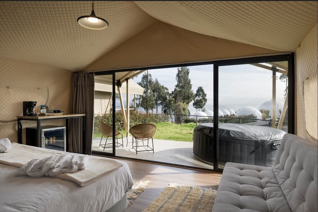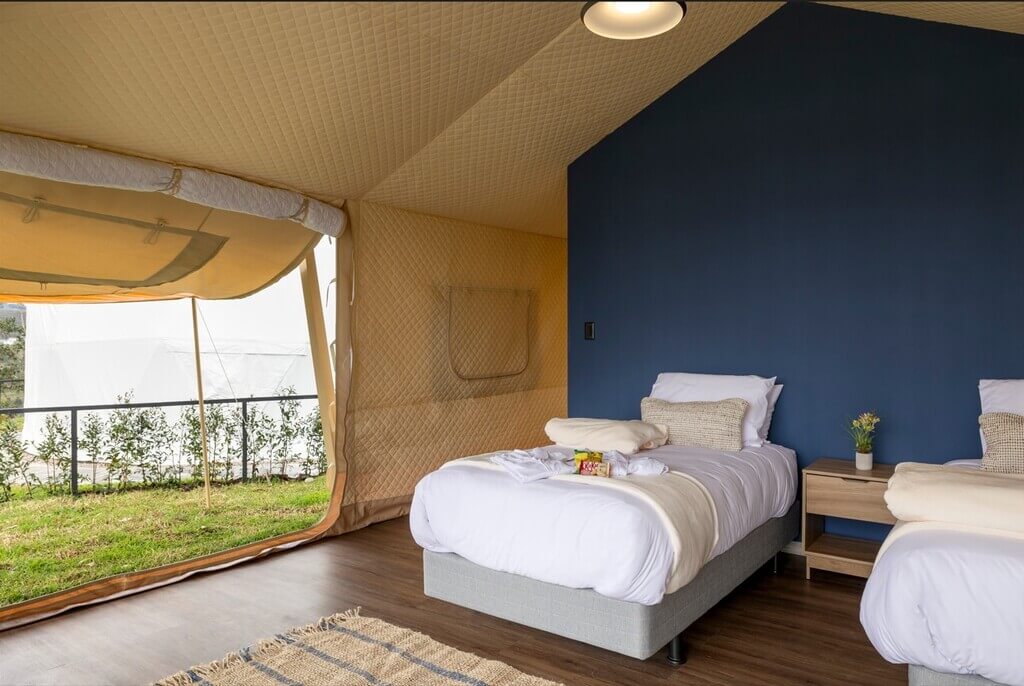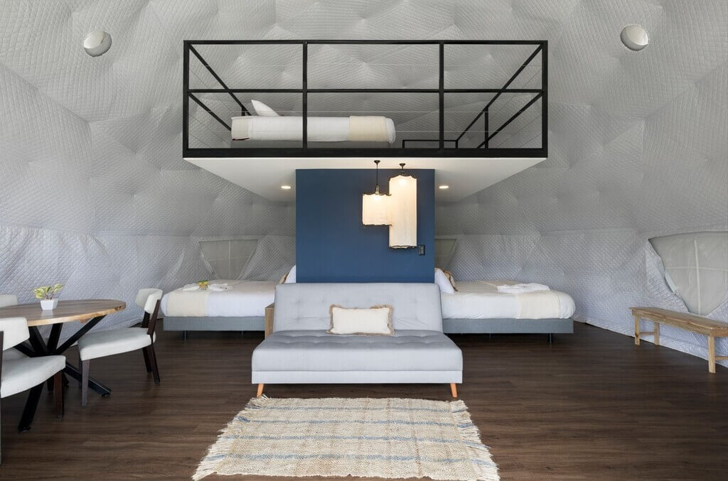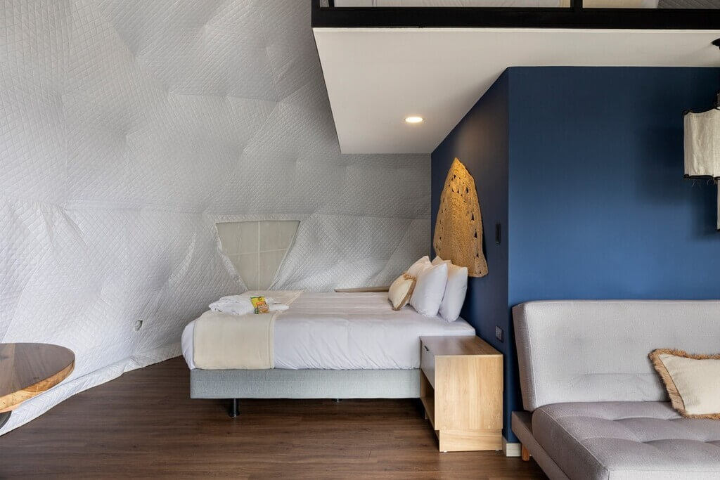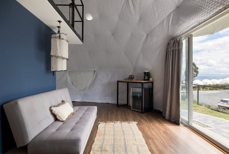 Las habitaciones vienen con una apertura transparente estilo "ventana" que ofrece una vista incomparable de Cuenca. Con dos amplias camas, puede alojar hasta 5 personas en un solo lugar. Acabados y detalles de lujo con sensación artesanal y natural que te harán no desear despegarte del domo. Un baño completo y con acabados de lujo para mayor comfort.